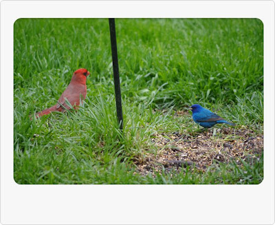Cardinal and Indigo Bunting- new feeder friends